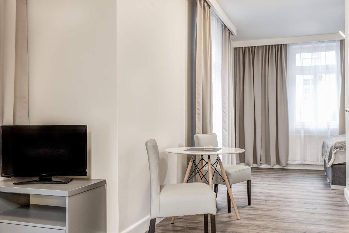 Studio z balkonem. Studio to oferuje łazienkę oraz balkon z widokiem na spokojną ulicę. Jego wyposażenie obejmuje telewizor z płaskim ekranem i dostępem do kanałów satelitarnych. W tej opcji zakwaterowania znajdują się 3 łóżka. Studio - 4 osobowy. Powierzchnia pokoju ok.: 30 mkw. ;