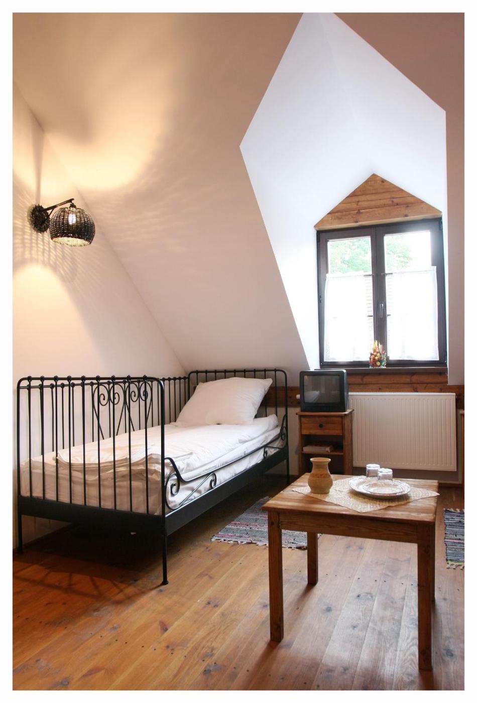 Pokój Jednoosobowy typu Budget. Jest to urządzony w stylu folklorystycznym pokój z drewnianymi meblami i pościelą. Pokój Jednoosobowy - 1 osobowy. Powierzchnia pokoju ok.: 15 mkw. ;