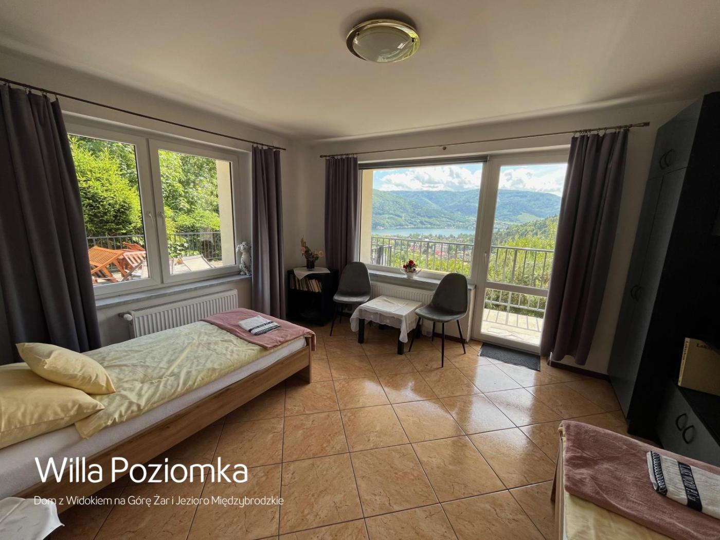 Willa Poziomka z tarasem i widokiem na Górę Żar i Jezioro Międzybrodzkie