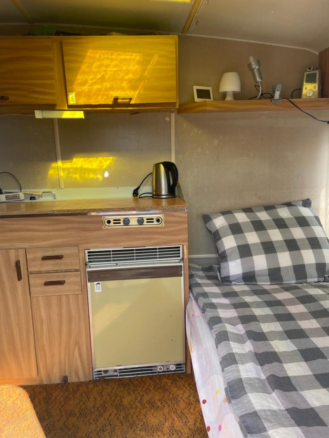 Przyczepa kempingowa. The mobile home features shared bathroom equipped with a shower and a hairdryer. The unit offers 2 beds. Domek holenderski - 3 osobowy. Powierzchnia pokoju ok.: 5 mkw.