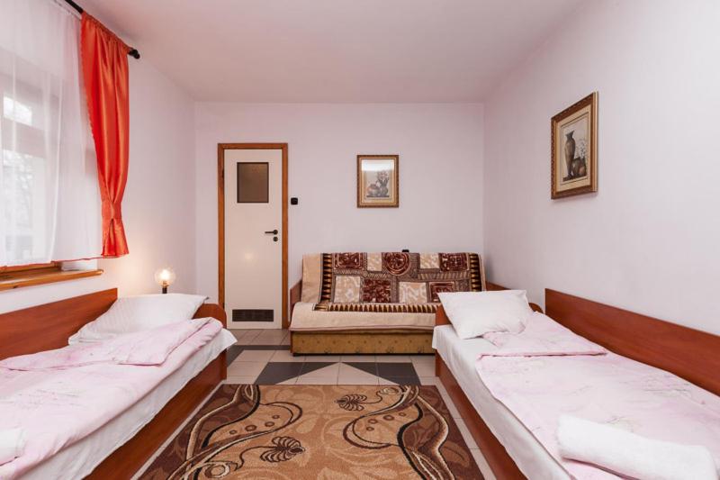 Pokój trzyosobowy. The triple room offers an electric kettle, as well as a private bathroom boasting a bath or a shower. This triple room provides a flat-screen TV. The unit has 3 beds. Pokój Trzyosobowy - 3 osobowy. Powierzchnia pokoju ok.: 20 mkw.
