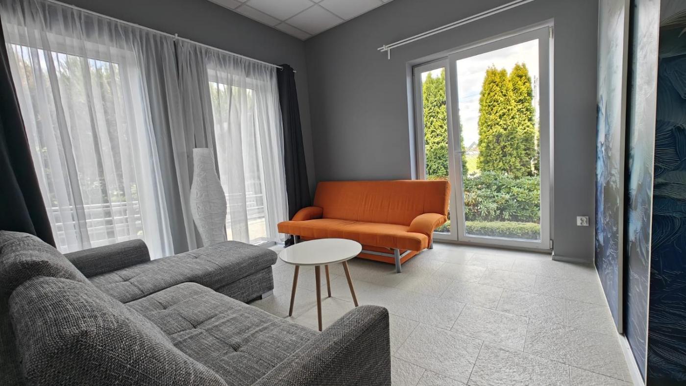Apartament z 1 sypialnią. Featuring a private entrance, this apartment comprises 1 living room, 1 separate bedroom and 1 bathroom with a shower. Guests will find a stovetop, a refrigerator and an oven in the kitchen. The apartment also provides guests with a barbecue. Among the room amenities are a washing machine, a wardrobe and a sofa as well as garden views. The unit offers 2 beds. Apartament - 4 osobowy. Powierzchnia pokoju ok.: 40 mkw.