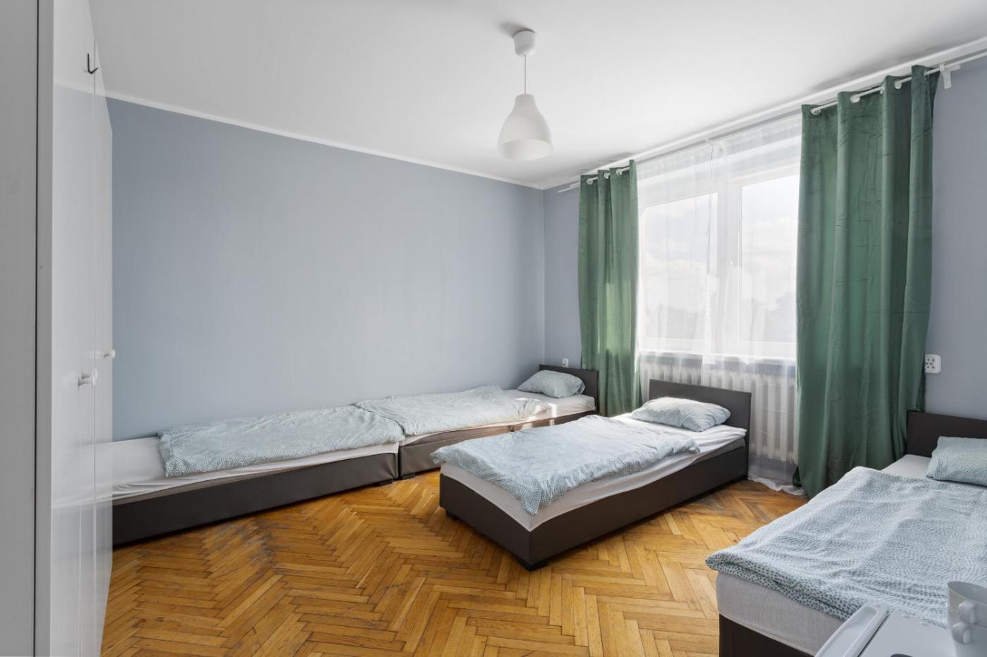 Pokój Trzyosobowy ze wspólną łazienką. The triple room provides a tea and coffee maker and a dining area, as well as a shared bathroom featuring a shower. The triple room offers a wardrobe and heating. The unit offers 3 beds. Pokój Trzyosobowy - 3 osobowy. Powierzchnia pokoju ok.: 10 mkw. ;