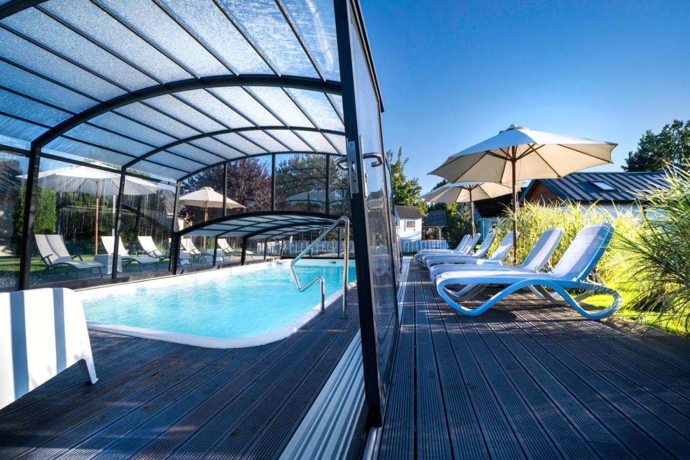 Domek z 2 sypialniami. This chalet is comprised of 1 living room, 2 separate bedrooms and 1 bathroom with a walk-in shower. Guests will find a stovetop, a refrigerator, a dishwasher and kitchenware in the fully equipped kitchenette. The chalet also has a barbecue. Featuring a terrace with pool views, this chalet also offers a coffee machine and a flat-screen TV. The unit offers 4 beds. Domek - 6 osobowy. Powierzchnia pokoju ok.: 30 mkw.