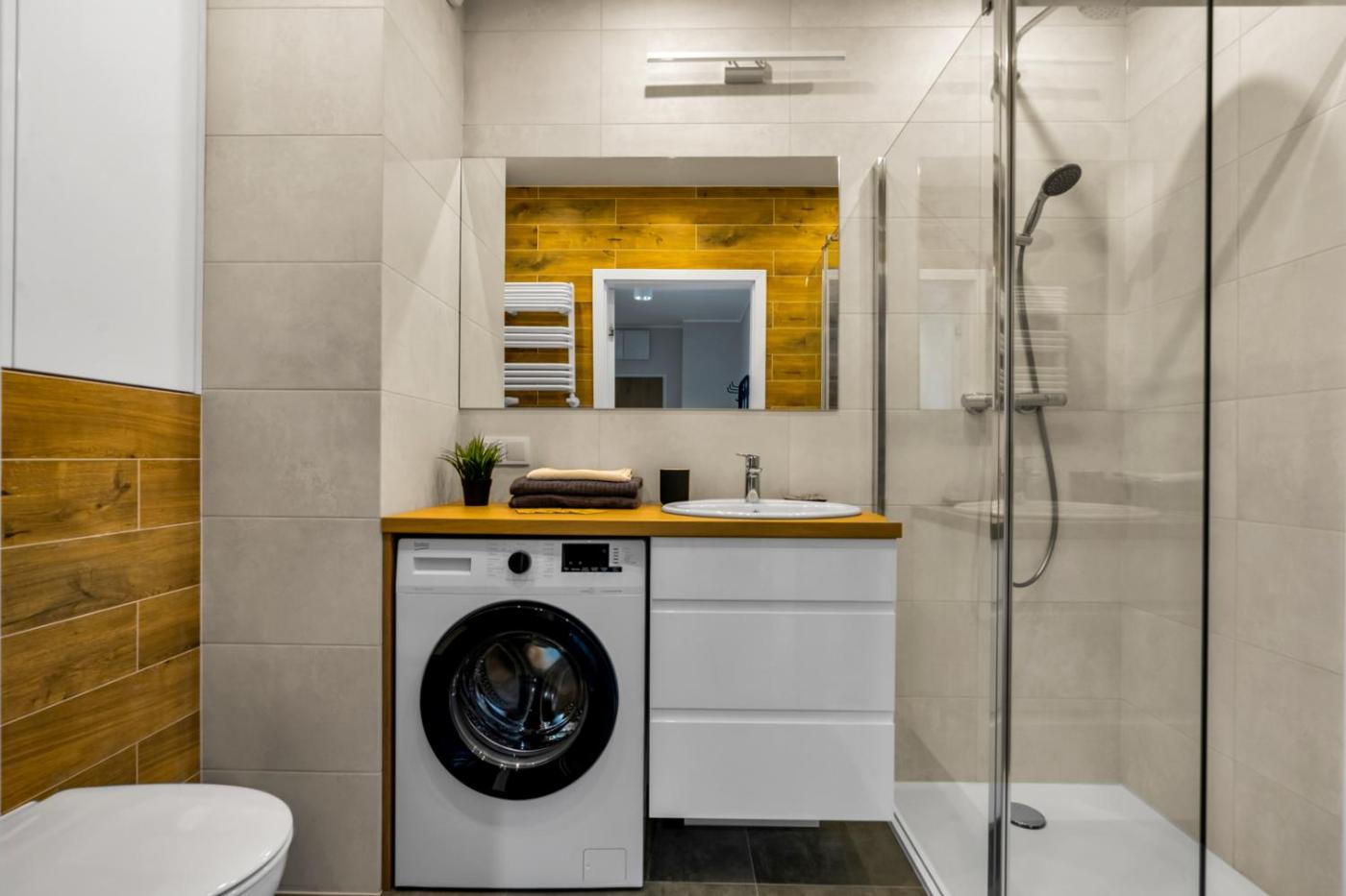 Apartament z 1 sypialnią. Boasting a private entrance, this apartment comes with 1 living room, 1 separate bedroom and 1 bathroom with a shower and a hairdryer. The well-fitted kitchen features a stovetop, a refrigerator, a dishwasher and kitchenware. This apartment has a washing machine, flat-screen TV with streaming services, city views, as well as chocolate for guests. The unit has 2 beds. Apartament - 4 osobowy. Powierzchnia pokoju ok.: 50 mkw.