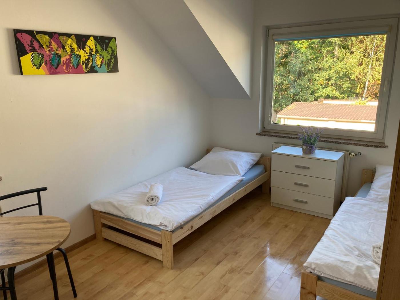 Pokój Trzyosobowy ze wspólną łazienką. Guests will find a stovetop, a refrigerator, kitchenware and a microwave in the well-equipped kitchenette. The triple room also comes with a barbecue. The triple room features a tea and coffee maker, a dining area, a terrace with garden views as well as a shared bathroom boasting a shower. The unit has 2 beds. Pokój Trzyosobowy - 3 osobowy. ;